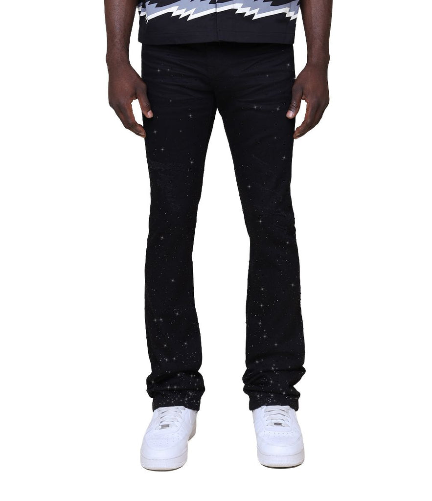 Smoke Rise - All Rhinestone Stacked Jean (Jet Black)